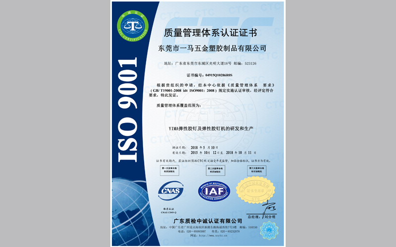 ISO質(zhì)量體系認(rèn)證-一馬膠針及膠釘機(jī)生產(chǎn)過程